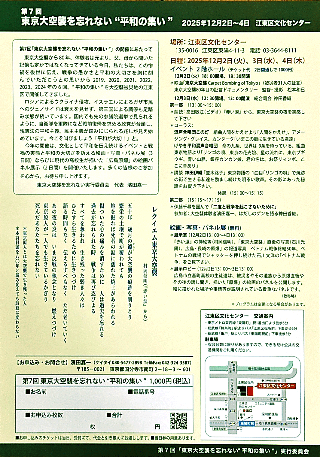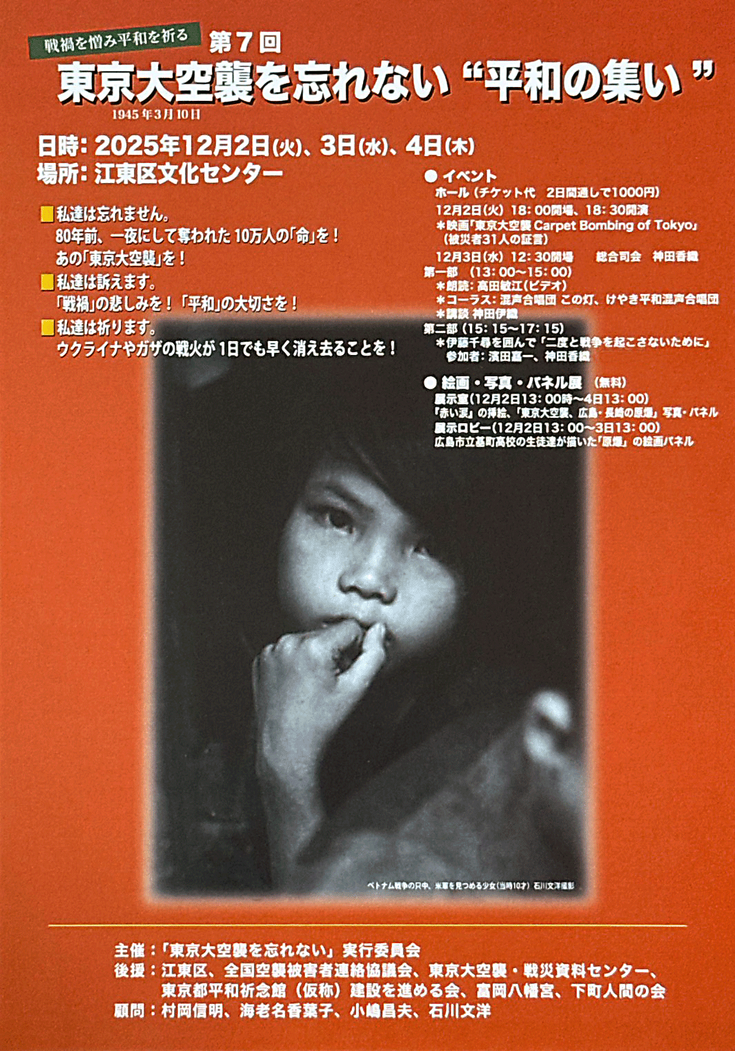 *私達は忘れません。80年前、一夜にして奪われた10万人の「命」を! あの「東京大空襲」を!